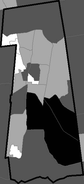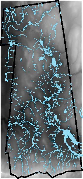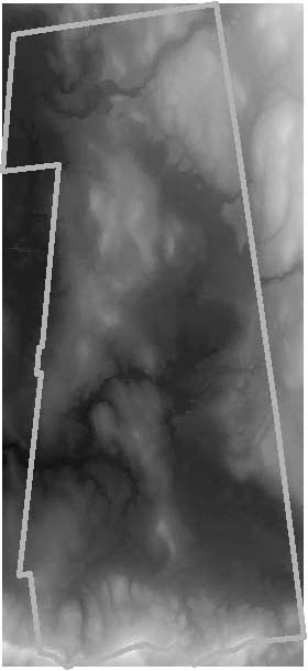 gives each pixel a color-coded elevation (black = 90 ft., white = 1302