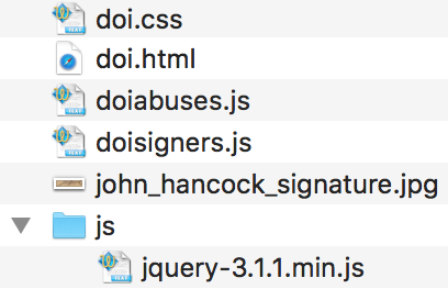 Challenge: Sometimes you need to do more than just return some text, in which case the D3 method html() will interpret HTML and insert it into the DOM. Can you use that to format the signers’ names as in the original document?